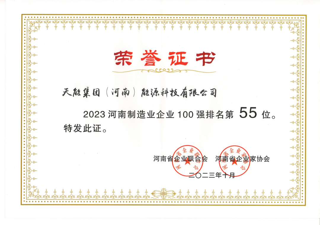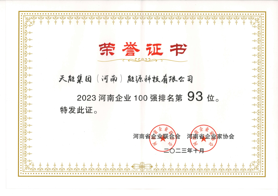 近日,河南省企业联合会、河南省企业家协会主办的“2023河南企业100强高峰会”在开封召开。会上发布系列百强榜单,今年会集团(河南)能源科技有限公司位列“河南企业100强”第93位,“河南制造业企业100强”第55位。